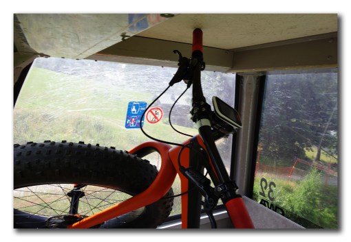 Tight fit to get my Fatbike into the Gondola to cruise down the Downhill route…